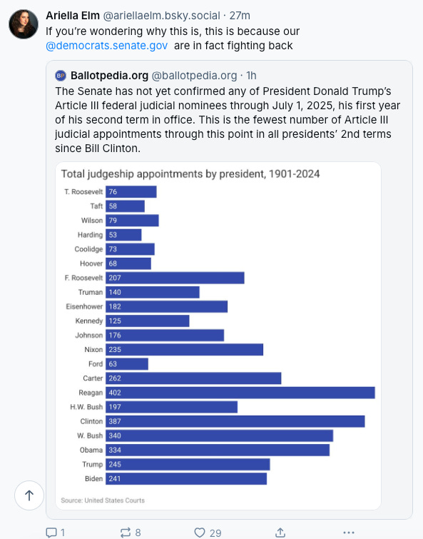 And in case you’re one of those “DO SOMETHING” people who love to bash Democrats, remember that they ARE doing something. A LOT. If you want to know what, you should follow Ariella Elm on any of the socials. She makes posts like the ones below, and daily posts like this one that list the wins for democracy and actions all over the country that are helping stem the tide of fascism, and we need to thank and elevate these soldiers for democracy.